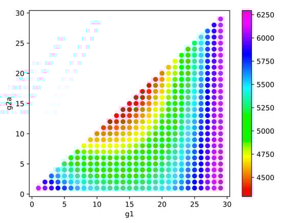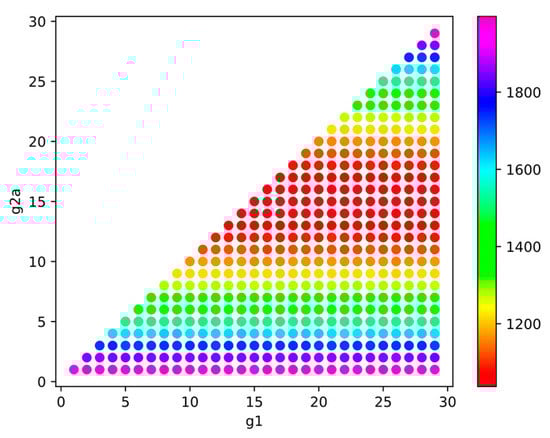 For the 30-row single-aisle airplane we use in this study, there are 435 feasible combinations of g1 and g2a that satisfy the above conditions.