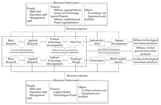 The form of war and the way of combat have changed profoundly with the extensive application of science and technology, which in turn has increasingly become an important factor affecting the outcomes of war and the strategies of national defense construction. To this end, it is necessary to integrate national defense and civilian science and technology. For example, China’s first self-developed aircraft carrier has accelerated the development of its naval equipment modernization as the main components are supplied by the research institutes of over 500 supporting units in over 20 provinces (municipalities and autonomous regions), most of which are non-military enterprises [1]. The Manhattan Project, Apollo Program, Shenzhou Program, Chinese Lunar Exploration Program, and the Chinese intercontinental ballistic missile development are all inseparable from the participation and contribution of civilian units [2]. The defense or civilian innovation system cannot complete national scientific research tasks alone; a wide range of scientific and technological innovation forces must be mobilized.
