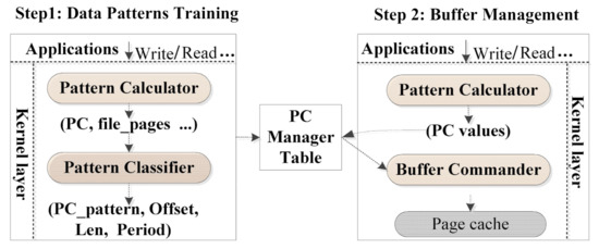 The scale of I/O intensive workloads generated and shared by enterprises, scientific research, and databases has increased immeasurably. For example, the GraphChi application structures a large amount of data in the buffer for calculation. GraphChi is an application for large-scale graph computation on a computer. It is used to replace distributed computing cluster handling very large real-world problems, such as analysis on social networks or the web graph. The popular big data training applications analyze data in kernel buffer as large as they can narrow the speed gap between CPU and storage devices. Some of the massive data even need to be analyzed and completed in a time-sensitive manner [1,2]. However, under scale-out workloads, the modern computer buffer hardware faces physical constraints in capacity. Then the management for size-limited buffer plays a critical role in systems, which provides a way to store data in storage devices (e.g., HDD, SSD) by bringing them into kernel buffer when they are needed. The reason is that the speed of DRAM is about 5–10 times that of the storage device [3]. Generally speaking, only the frequently accessed data are suitable for caching, so as to improve storage efficiency. Furthermore, treat-ahead support in the buffer also prompts the performance of the page cache. Given a series of continuous data, the experiments of 8 KB and 32 KB prefetching units could outperform that of the 4 KB prefetching unit by almost 60% and 71%, respectively. Therefore, how to identify accurate data patterns and exploit the prefetching length are the key concerns in buffer management schemes, called proactive abilities.