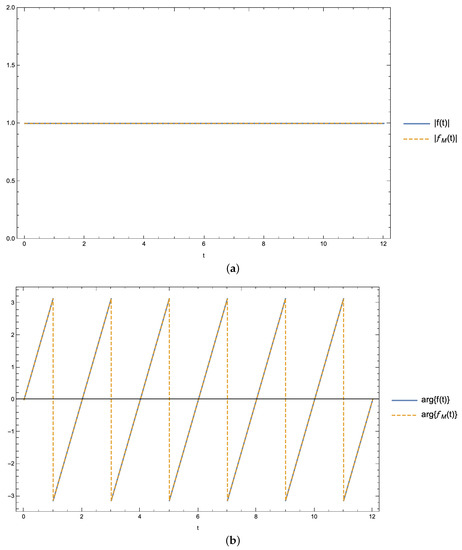 Magnitude (a) and argument (b) of the function as compared to the relevant Laguerre polynomial series approximant of order .