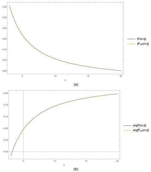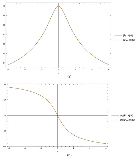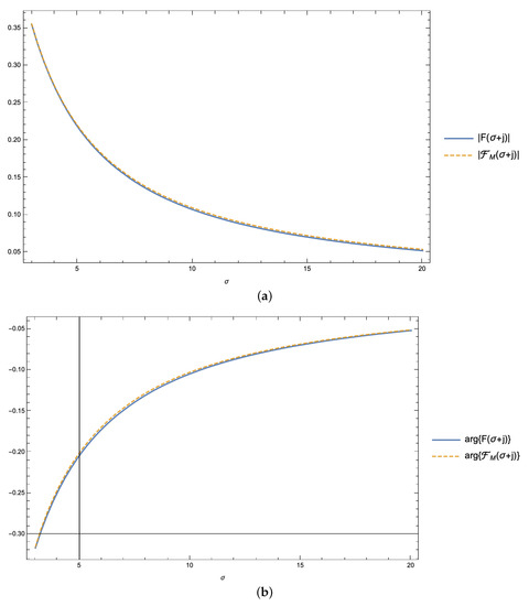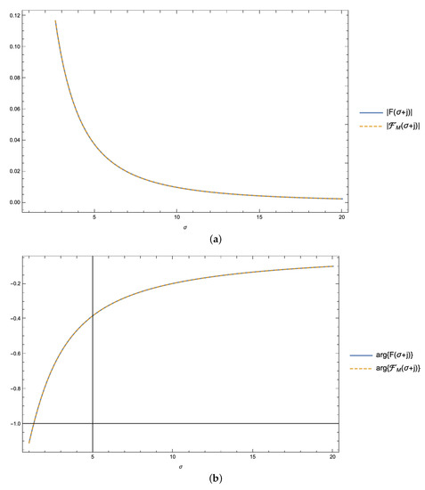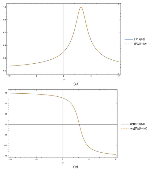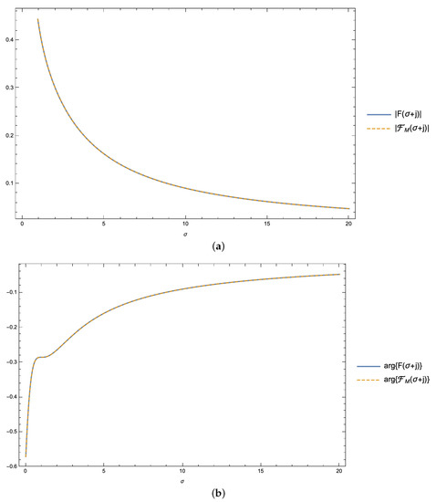 Magnitude (a) and argument (b) of the Laplace transform relevant to as a function of the complex variable for when computed using the exact integral expression and the Tricomi’s series approximant as derived from the truncated Hermite expansion of with order .