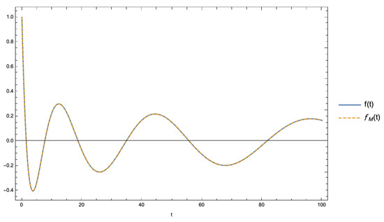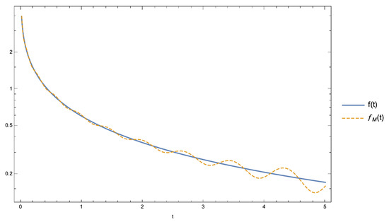 Theorem 2. If the analytic function is regular at infinity, decreasing at least as and such that, for a suitable choice of the parameter h, it can be represented with the power series:then it is the Laplace transform of the power serieswhere the coefficients and are linked by Equation (