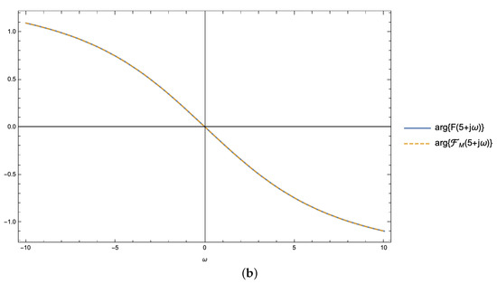 Magnitude (a) and argument (b) of the Laplace transform relevant to as a function of the complex variable for when computed using the exact integral expression and the Tricomi’s series approximant as derived from the truncated Maclaurin expansion of with order .
