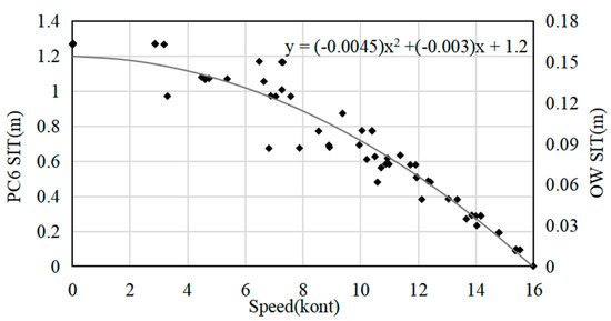 The speed model of the OW and PC6 vessels (the speed was 16 knots when the PC6 and OW ships passed through open water).