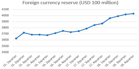Foreign currency reserves are foreign currency funds that a country is stockpiling in preparation for emergencies. Foreign currency reserves are an important means to respond to changes in the external environment and economic crisis. They are a liquid asset that responds to sudden capital inflows when a crisis occurs by reducing the rate of exchange rate fluctuations. As such, macroscopically, the amount of foreign exchange reserves is an external saving in the Korean economy, and external saving is determined at the same time as internal saving. The rapid increase in foreign exchange reserves has led to a decrease in domestic investment in the Korean economy. Thus, if the foreign exchange reserves increase rapidly, an imbalance in the financial sector will result, resulting in over-investment in real estate and stock markets. The following Figure 12 shows the status of foreign exchange reserves in Korea.