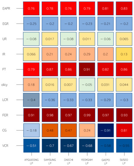 As a result, we were able to confirm whether the ten factors affect land prices. Nonetheless, four factors policy, interest rate, violent crime rate, and foreign exchange reserves were found to have more influence than the other factors. In addition, the F TEST confirmed that the dependent variables of the six regional living spaces were significant together with the independent variables.