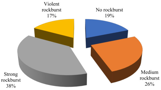 During underground operations, rockburst is a sudden and violent release of elastic energy stored in rock and coal masses. This causes rock fragments to eject, potentially causing injury, collapse, and deformation of supporting structures, as well as damage to facilities [1,2,3]. Related activity occurs in open cuts in the mass of the joint rock [4,5]. For both the civil and mining engineering industries, its economic consequences are important. The mechanism is not yet well understood owing to the difficulty and uncertainty of the rockburst. In order to mitigate the risks caused by rockburst, such as damage to equipment, access closure, delays, and loss of property and life, it is important to accurately predict or estimate the realistic potential of rockburst for the safety and efficient construction and serviceability of underground projects.