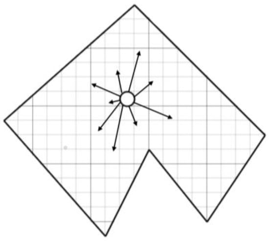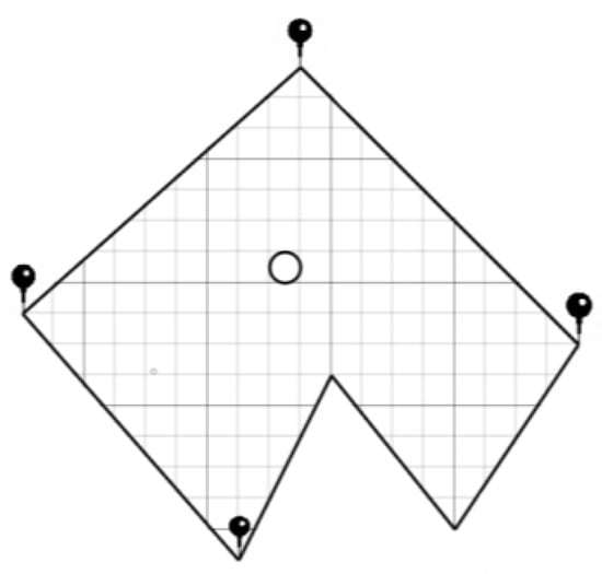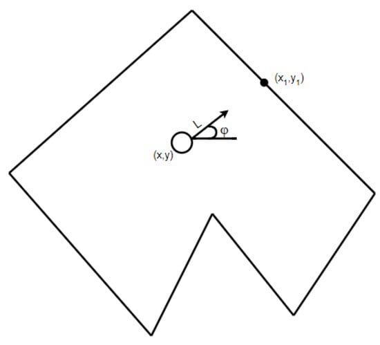 In order to solve the problem, let us suppose without reducing the universality that the room will be depicted in the form of a plane (in our case a polygon), which is represented by a set of points (see Figure 1). By connecting these points consistently we will receive the model of our room. The lidar is presented in the form of a point that will be located in the middle of our plane and the size of which we can neglect.