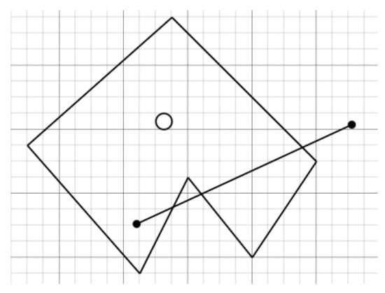 In the future, if the line crosses the side, it means that it again is inside the plane and it needs to go out to reach the generated point. From this it can be concluded that direct, which combines our two points should cross the odd number of sides (see Figure 4).