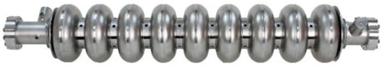 A 1.3 GHz 9-cell superconducting cavities for the ILC. The length is 1.25 m.