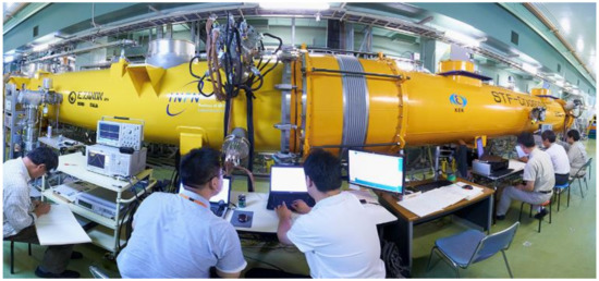 Eight or nine 9-cell cavities are assembled into one cryomodule that provides support and cooling. Since cavities and cryomodule parts are manufactured in different parts of the world, a question arises if they can be successfully assembled without degrading the performance. For this purpose, “plug compatibility” designs are adopted, where the designs of connection points are rigorously defined. To test the idea in practice, a so-called “S1-Global” project (Figure 4) was performed in which parts produced all over the world were brought to the KEK laboratory in Japan to be assembled together. The result was satisfactory.
