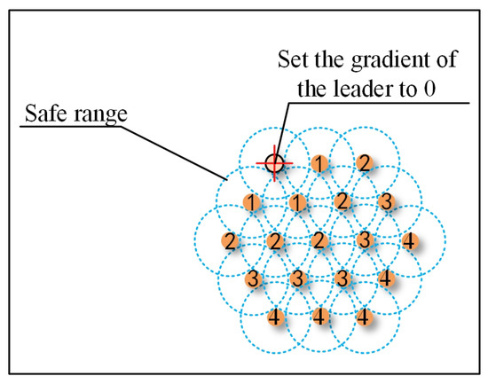 , but the distribution of the initial selected leader robots is not necessarily reasonable. For example, the distance may be close, which will affect the effect of grouping. Therefore, it is necessary to update the leader robots automatically. The leader robot chooses a neighbor as the new leader according to the neighbor’s position and the current position of other leaders. The sum of the distance to other leaders of the new leader robot