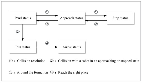 Figure 6, when a collision or deadlock occurs in the Coverage status, the robot will switch to the Stop status and stop its movement temporarily. The robots will not continue to cover the area until there are no more conflicts and deadlocks are lifted.