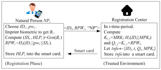 When a natural person NPi with a smart card wants to join the system, NPi interacts with RC as the following steps, which are illustrated in Figure 3.