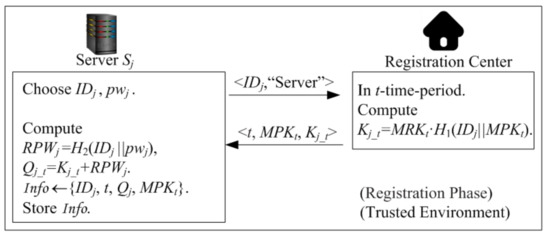 Step 3: After receiving <Kj_t>, Sj computes RPWj = H2(IDj||pwj) and Qj_t = Kj_t + RPWj and lets Info ← {IDj, t, Qj, MPKt}. Sj then stores Info.