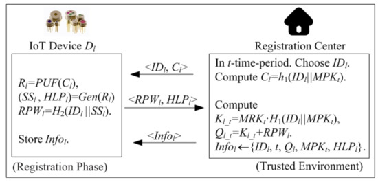 The following steps, which are illustrated in Figure 5, are performed in a trusted environment before adding an IoT device Dl into the system.