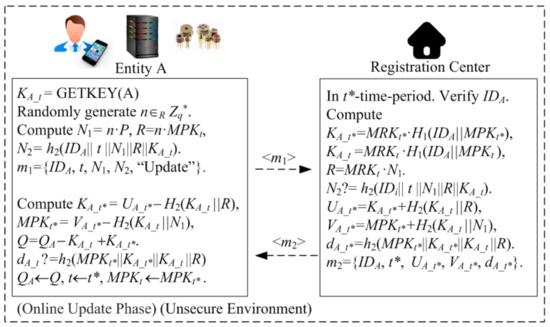 Each NP, Server, and IoT device needs to perform the following steps, which are illustrated in Figure 6, through an untrustworthy channel to online update its secret key before it authenticates with another member in t-time period.
