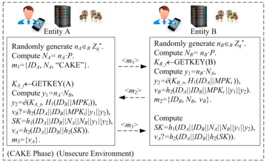 The proposed CAKE protocol comprises four phases, namely, initialization, registration, online update, and compatible authentication and key exchange (CAKE) phases. Note that in both the online update and CAKE phases, we define an algorithm GETKEY(A) to be a procedure obtaining the secret key of member A.