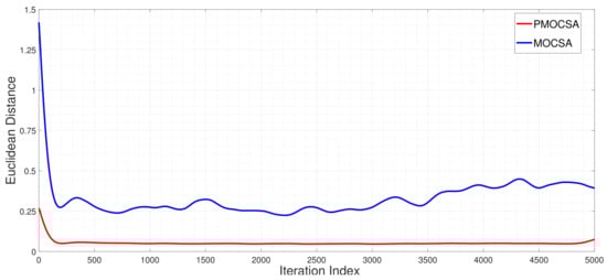 In the proposed PMOCSA outlined in Algorithm 1, the feasibility of the nests is assured by the projection optimization performed in steps 3, 7, and 14, which can be demonstrated as a search within the feasible set of nests for the closest nest to the projected nest . Accordingly, the projection optimization problem is formulated as follows