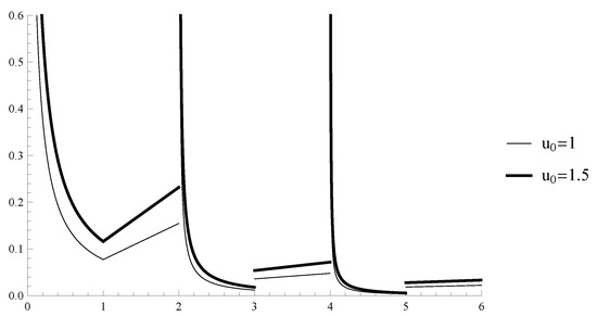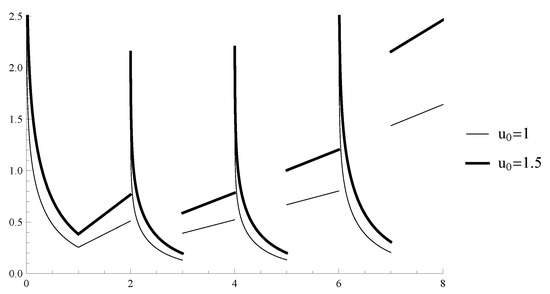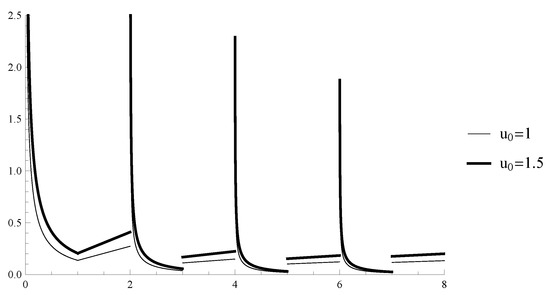 For the solution is not generalized Lipschitz stable in time (for particular values , and the graphs of the solutions are given in Figure 4).