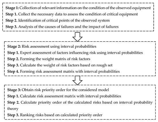 Having in mind that a complex power system consists of many interdependent subsystems, analyzing the system’s state, keeping reliability at a desired level, and mitigating losses becomes harder than ever [,]. That is why new risk assessment methodologies that deal with uncertainty are introduced. The main challenge for this research was to develop a risk assessment methodology when the accurate failure equipment database and the probability distribution of equipment states are missing. For instance, when a group of experts evaluate risk, their evaluation of event probability can be expressed only as an interval value.