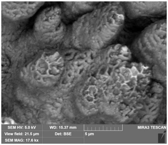 SEM micrograph of lithium surface of the sample from the T–10 tokamak and subsequently irradiated with plasma in the PLM plasma device.