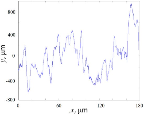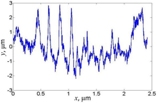 For the titanium sample, the measured relief heights (Figure 9) demonstrated intermittent behavior with non-trivial stochasticity. For the tungsten sample (Figure 10), profiles of 0.2 mm length were measured with the base resolution of 20 nm (see the description in [2]).