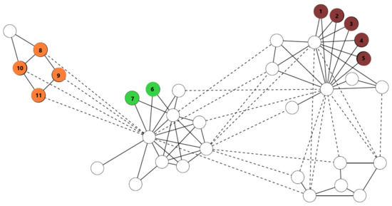 - Newman, M.E.J. Finding community structure in networks using the eigenvectors of matrices. Phys. Rev. E 2006, 74, 036104. [Google Scholar] [CrossRef] [PubMed]