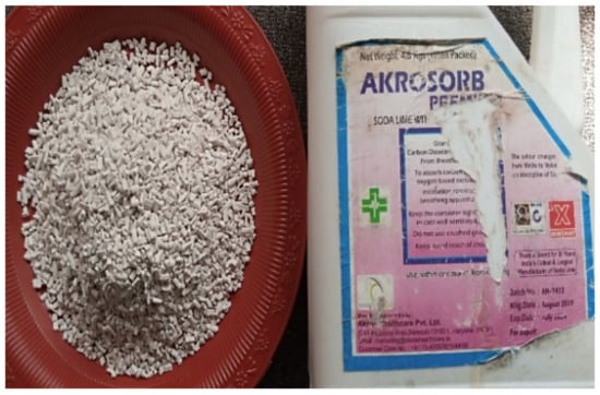 Bentonite has shown to be a good material [] that could capture the flue toxic gases and is readily available in abundance in Nigeria and several countries of the world. It has also been shown to be appropriate for the adsorption of pollutants due to its Montmorillonite content. Likewise, the sodium (Na-Bentonite) form of Bentonite was adopted and recommended to this application because it is a good clay that facilitates swelling, abating contaminant migration, sealing of gases, water retention, and low hydraulic conductivity. Furthermore, because of its chemical properties and useful layer surface, Na-Bentonite has Na+ ions, which occupy more than 50% of the cations exchange capacity. On the other hand, Akrosorb soda-lime is a CO2 removal adsorbent used in medical, military, diving, and safety application and is made up of calcium and sodium hydroxide with a high affinity for CO2. Akrosorb is slightly expensive; as a result, the combined use of Akrosorb soda-lime and molded Bentonite clay will help in reducing the high cost of Akrosorb soda adsorbent. Hence, there is a need to design, fabricate, and test run this novel technology with a unit adsorption column configuration to capture CO2 and other GHG emissions from flare systems []. In addition, there are no studies in the relevant literature on the use of both Akrosorb soda-lime and Bentonite clay adsorbent simultaneously for CO2 and other GHG emissions from a flare system.