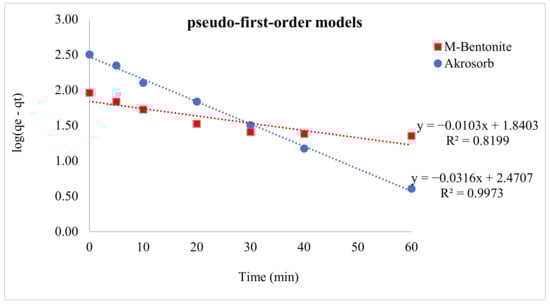 In addition, the pseudo-2nd-order model was used to assess the kinetic behavior of the Akrosorb soda-lime adsorbent depict in Figure 4 and its conformity with experimental data, while the value of regression coefficient (R2) was used to analyze the kinetic model. The pseudo-1st-order model is represented in Equation (8).