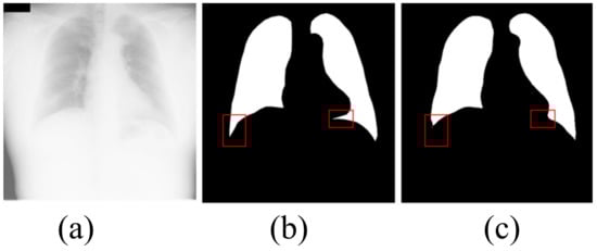 Accurately segmenting the lungs is a challenging image processing task [12]. The lungs have a strong transmittance to X-rays, and the gray value in the corresponding area of CXR is low. The surrounding tissues have low transmittance to X-rays and the gray value in the corresponding area of CXR is high. Figure 1 lists the CXRs of healthy people, patients with a small number of opacities and patients with a large number of opacities. In healthy people’s CXRs, the boundary between the lung and the surrounding tissues is obvious, clear and prominent. There are slight opacities in the lungs of CXRs in patients with a small number of opacities, especially at the edges of the lungs. The slight opacities reduce the contrast between the edge of the lung and the surrounding tissues and make segmentation difficult. For CXRs in patients with a large number of opacities, the boundary between the lungs and surrounding tissues is blurred. To a large extent, it is necessary to rely on the rich experience of physicians to correctly segment the lungs.
