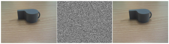 Adversarial example. From (left) to (right): original image (classified as “whistle”), adversarial noise added, resulting adversarial image (classified as “screw”).
