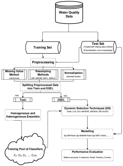 Consequently, this study’s hypothesis is formulated that it is possible to improve the performance of ensemble-based approaches on imbalanced WQAD classification problems using dynamic selection techniques combined with missing data and resampling methods. Hence, the following highlights the contributions of this study: