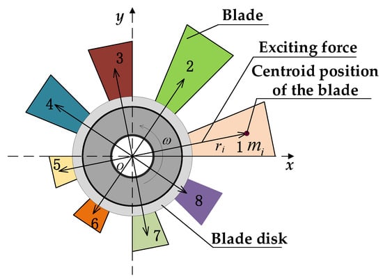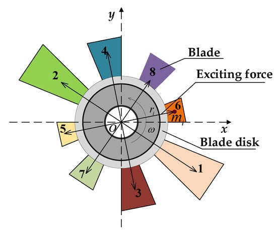 2.2. Physical Model of Blade Assembly on Asymmetric Disk