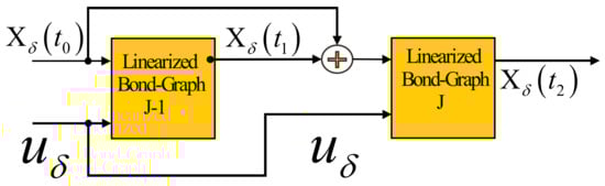 thus, for each term of (42), i.e., the integral can be obtained by a linearized bond graph from to with and the solution of this model is used to introduce the next linearized bond graph model that solves from to with and so on; then the approximated state variables for can be obtained by connecting linearized bond graph models with the necessary conditions defined by Lemma 1, which is proven. □