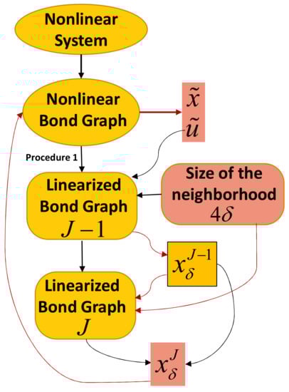 The class of nonlinear systems applied in this paper are systems with products of state variables. The nonlinear bond graph models defined by (21) are linearized to obtain (36). Thus, the linearized bond graph models are constructed according to the steps described in the following Procedure 1:
