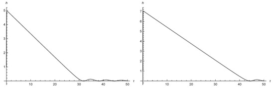 Let us start from an empty universe, where and the curvature R does not depend on space coordinates, . In FLRW-metric (6), Equation (53) takes the form: