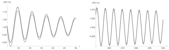 Due to a very large value of Q, the solution, , is initially close to equilibrium: