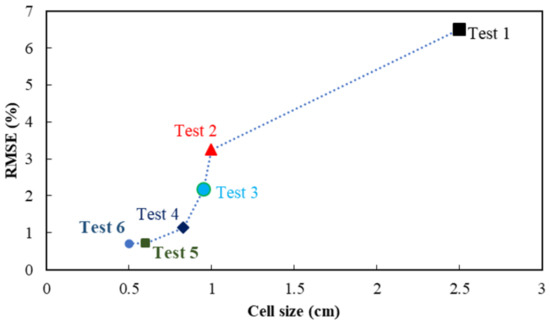 A mesh independence study was performed with increasing computational elements until the results were no longer materially dependent on the element sizes. Table 3 summarizes the mesh-independence results, and Figure 4 indicates the RMSE values for various meshes.