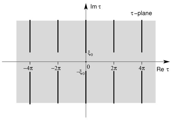 where is a function holomorphic in the domain of the -plane (i.e., ). Furthermore, from representation (A40) one sees that is -periodic and, therefore, holomorphic in and, in additon, satisfies the symmetry relation