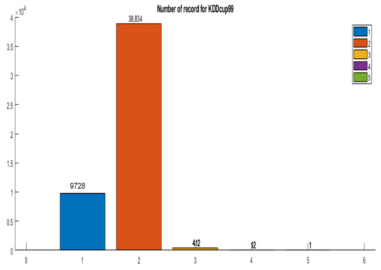 The KDD99 dataset has been the most widely used dataset for network intrusion detection, since 1999; [57] generated this data collection based on the data collected during the DARPA IDS assessment program in 1998. DARPA’98 consists of approximately 4 gigabytes of compressed raw (binary) TCP dump data from seven weeks of network traffic, which can be processed into approximately five million link records, each containing about one hundred bytes. There are approximately two million link records in the two weeks of test results. Each of the nearly 4,900,000 single link vectors, in the KDD training dataset, has forty-one features and is classified as either regular or an attack of a specific kind.