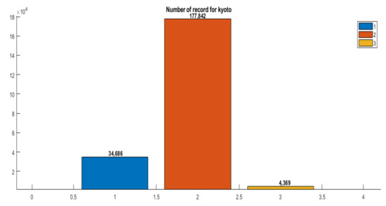 Classes’ distribution in terms of samples sizes for the Kyoto dataset.