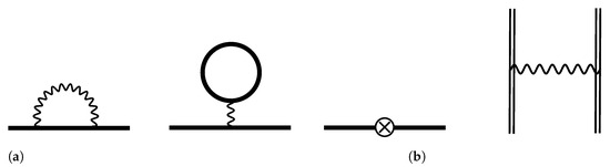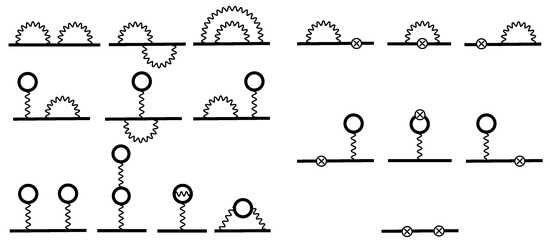 which arises from the fourth sum in Equation (A3), the second one in Equation (A4), and the third one in Equation (A6). The self-energy wave-function part reads