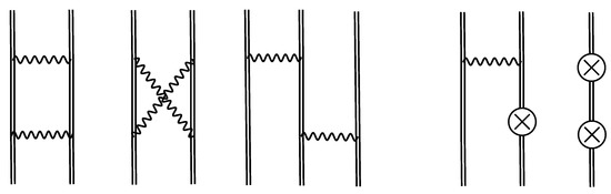 In the standard vacuum formulation, the latter contributions correspond to the one-photon-exchange and counterpotential diagrams, that are displayed in Figure 1b. The aim of the present subsection is to derive expressions for the interelectronic-interaction diagrams from the redefined vacuum formulation and demonstrate its equivalence to the standard one.