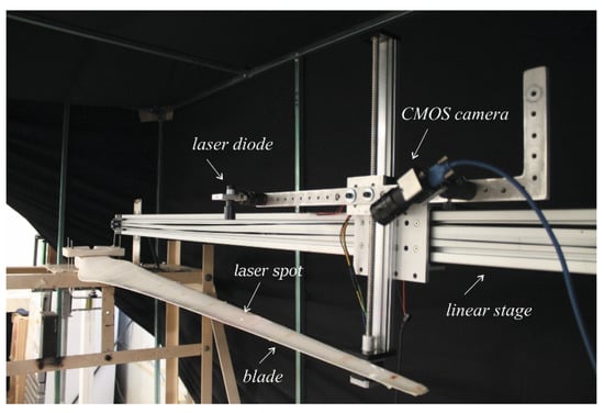 Optical techniques have the advantage of being non-invasive and offer in most cases an alternative for the measurement of lateral displacements. These optical techniques employ devices such as laser vibrometers, fiber optic sensors, laser triangulation, and photogrammetry techniques, which provide better results in static and dynamic configuration tests for the measurement of modal parameters in low-power wind turbine blades, as in the case of this application proposal.