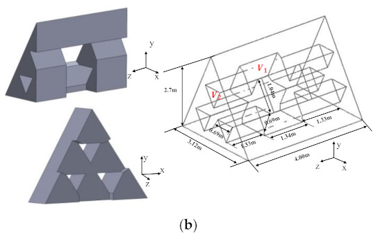 This paper is organized as follows. First, we apply fractal theory to design a Menger cube and triangle AR under different fractal orders, respectively. A quantified index, i.e., VSCI, is proposed to evaluate the structural complexity of ARs under different fractal levels. Second, the four cases were selected for detailed numerical analysis: a solid AR (n = 1), Menger ARs (n = 2,3), and traditional frame ARs. These simulation results can illustrate the relationship between the structural complexity and the flow field effect around ARs. Cost-benefit analyses were conducted following non-dimensionalized treatments, i.e., the convection efficiency index and recirculating efficiency index.