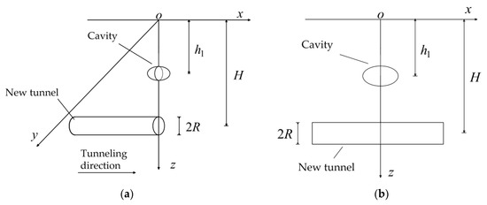 - Fourth, there are few theoretical solutions to the ground settlement and the soil displacement caused by tunnel excavation in the ground strata containing cavities. Among them, Yang et al. [10] studied the theoretical solution through the Schwarz alternating method and the elastic solution for the complex variable function. However, they could not examine the distribution law of the surface settlement along the direction of the shielded tunneling and did not derive the calculation formula for the deformation of the soil layer at different depths. In addition, complexity and cumbersome calculations are not conducive to popularization and application.