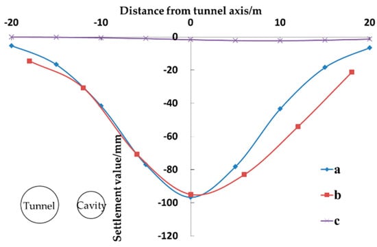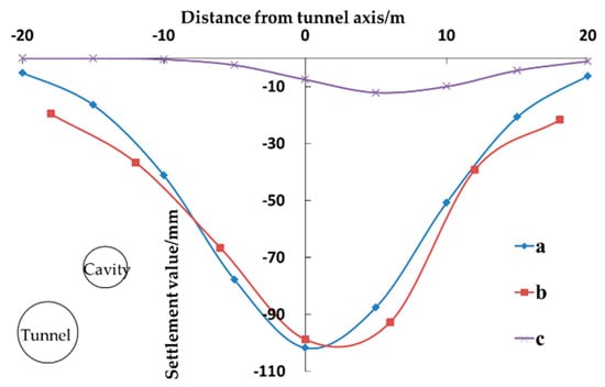 - Third, this work introduces the concept of the convergence rate of the cavity (εs) to express the size of the convergence of a cavity. On the basis of the research results of Loganathan [22], it is proposed that the convergence rate of the cavity can be estimated according to the relative position of the tunnel and the loss rate of the soil (ηs) caused by the tunnel excavation.