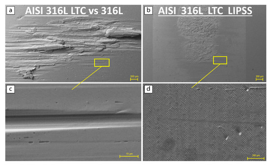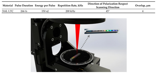 - Gnilitskyi, I.; Rotundo, F.; Martini, C.; Pavlov, I.; Ilday, S.; Vovk, E.; Ilday, F.Ö.; Orazi, L. Nano patterning of AISI 316L stainless steel with Nonlinear Laser Lithography: Sliding under dry and oil-lubricated conditions. Tribol. Int. 2016, 99, 67–76. [Google Scholar] [CrossRef]