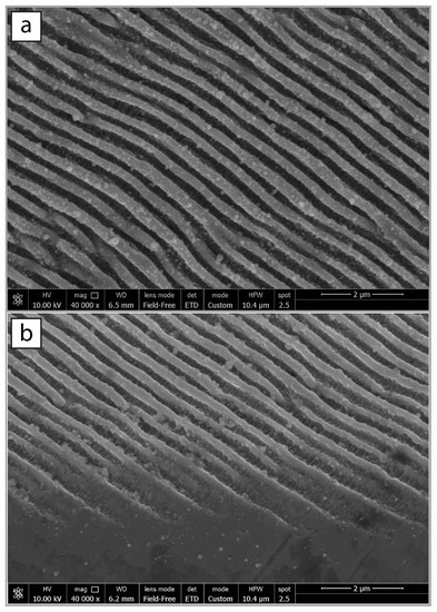 - Miyaji, G.; Miyazaki, K. Origin of periodicity in nanostructuring on thin film surfaces ablated with femtosecond laser pulses. Opt. Express 2008, 16, 16265–16271. [Google Scholar] [CrossRef] [PubMed]